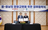 영암 전향윤 기자2025. 03.31[뉴스맘](재)영암문화관광재단이 지난 28일 영암군 가야금산조기념관에서 (재)부산문화재단과 ‘영-호남의 문화교류’를 위한 상호협력을 위한 협약식을 진행했다고 밝혔다. 이번 협약은 영-호남의 대표적인 문화 사업인 부산의 조선통신사와 영암의 왕인박사를 중심으로 두 기관이 뜻을 모은 결과다. 협약에 따라 두 기관은 ▲각 재단의 문화 사업 콘텐츠 교류 협력 ▲한일 문화교류의 상징인 조선통신사, 왕인 문화 콘텐츠 개발을 위한 상호 협력 ▲양 기관의 상호 공동 발전을 위한 문화 네트워크 활성화 등을 추진하기로 했다. 부산문화재단 오재환…