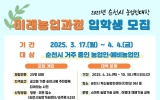 순천 전향윤 기자2025. 03.31[뉴스맘]순천시는 오는 4월 4일까지 2025년 농업인대학 미래농업과정 입학생을 모집한다고 밝혔다. 2025년 순천시 농업인대학 미래농업과정은 4월 24일 입학식을 시작으로 10월 30일까지 스마트농업 기술교육 및 아열대 재배기술 교육을 21회(83시간) 실시한다. 올해는 국립순천대학교와 협의하여 농업과학교육원 스마트팜 실습교육장에서 파종, 육묘, 착과량 조절, 수확 등 스마트팜 실습교육을 통해 실질적인 미래농업기술을 배울 수 있는 기회를 제공할 계획이다. 아열대 재배기술 강의는 국립원예특작과학원 온난화대응연구소의 문두경 박…