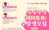 보성 전향윤 기자2025. 03.28[뉴스맘]전라남도 나주시가 지역 문학관에서 ‘시(詩)’ 창작 무료 강좌를 운영한다. 나주시는 4월부터 타오르는강 문학관, 백호문학관에서 ‘시인과 함께하는 시 창작 교실’을 운영한다고 28일 밝혔다. 시 창작 교실은 ‘시시각각’(詩詩各各·각자의 시, 모두의 시)이라는 주제로 평일반과 주말반으로 구성했다. 평일반은 오는 4월 11일부터 5월 30일까지 총 8주간 매주 금요일 오후 7시부터 타오르는강 문학관에서 이대흠 시인이 진행한다. 이대흠 시인은 1994년 창작과 비평에 ‘제암산을 본다’ 외 6편의 시를 발표하며 시인의…