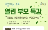 순천 전향윤 기자2025. 03.25[뉴스맘]순천시는 오는 4월 11일 오전 10시에 신대도서관에서 『자녀의 사회성을 높이는 부모의 역할』을 주제로 전문가 초청 부모 특강을 개최한다고 밝혔다. 이번 특강은 부모교육 전문가이자, ‘멘탈이 강한 아이가 결국 해냅니다’의 저자인 임영주 박사를 초청하여 △자녀의 자존감을 올리는 대화법 △학교폭력 등 갈등상황에서의 대처 △자녀 양육의 솔루션 등을 허심탄회하게 이야기 나눌 예정이다. 시는 매년 청소년 자녀를 둔 부모, 지도자를 대상으로 자녀와 함께 성장하는 부모 집단상담 및 정서코칭, 성・사이버폭력 등 다양한 주제의 …