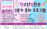 화순 전향윤 기자2025. 03.20[뉴스맘]화순군은 20일 군립청소년수련관에서 '2025년 2분기 문화 프로그램 참가자 172명을 선착순 모집한다고 밝혔다. 이번 2분기 프로그램은 청소년들이 창의력과 자기 표현력을 키울 수 있도록 스포츠·요리·악기 등 다양한 분야의 강좌를 운영하며, 수련관 이용 청소년의 관심사와 요구를 반영했다. 수업은 ▲슬기로운 ‘스포츠’ ▲‘다트’ 챔피언 ▲맛있는 그림책 ‘리딩푸드’ ▲‘발레’ 꽃이 피었습니다 ▲‘체스’ 다이브 ▲‘도시락’ 만들어 봄 ▲스텝 바이 스텝 ‘클라이밍’ ▲상상 놀이터 ‘창의 미술’ ▲‘통기타’ 스타트 ▲‘마술’ 연…