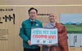 영광 전향윤 기자2025. 03.19[뉴스맘]전라남도 나주시는 무량사에서 지난 18일 어려운 이웃을 위해 백미 28포(20kg, 총 150만 원 상당)를 기탁했다고 밝혔다. 이번 기부는 신도들의 정성을 모아 마련된 것으로 지역 내 조손가정과 가정위탁아동 등 복지 사각지대에 있는 이웃들에게 전달될 예정이다. 무량사는 송촌동에 위치한 대한불교조계종 사찰로 불교의 자비와 나눔 정신을 바탕으로 신도들과 함께하는 나눔과 봉사활동을 꾸준히 이어오고 있다. 이날 기탁식에는 윤병태 나주시장과 하담 주지스님이 참석했다. 하담스님은 “작은 정성이지만 어려운 이웃들에게 따뜻한 위로…