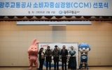 광주 전향윤 기자2025. 03.05[뉴스맘]광주교통공사는 최근 광주시 서구 마륵동 본사에서 고객가치 최우선 실현을 위한 CS 미션 및 소비자중심경영(CCM) 선포식을 개최했다고 밝혔다. 이날 행사는 고객과의 접점에 가장 맞닿아 있는 공사 서비스마케터와 시민소통기자단 및 임직원 등 100여명이 참석한 가운데 ▲CS 미션 캘리크라피 퍼포먼스 ▲CCM 도입 선언 ▲최고고객책임자(CCO) 임명 ▲전 직원의 실천 다짐 순으로 진행됐다. 공사는 이날 선포식에서‘사람과 도시를 연결하고 미래교통을 선도하는 광주교통공사’를 CS 미션으로 선언하고 전사적인 소비자중심경…