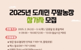 광양 전향윤 기자2025. 02.21[뉴스맘]광양시가 ‘2025년 도시민 주말농장’ 참가자를 모집한다. 주말농장은 시민들이 직접 텃밭을 가꾸며 농업을 체험할 수 있도록 지원하는 사업이다. 농장은 광양시 농업기술센터가 퇴비와 비료 사용, 경운, 구획 정리 등 기본적인 기반 조성을 담당하고, 참가자는 모종, 종자 및 소농기구 등을 개별적으로 준비해 자율적으로 텃밭을 가꾸는 방식으로 운영된다. 올해 주말농장 운영 기간(경작 기간)은 오는 4월부터 12월까지다. 규모는 총 160구획이며 ▲ 일반 텃밭 100구획 ▲ 은퇴자 텃밭 20구획 ▲ 다자녀가정 텃밭 20구…
