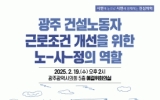 [뉴스맘]지역 건설산업의 열악한 실정을 이해하고, 건설노동자 고용 안정성을 확보하며 노사정 역할과 상생 방안을 모색하기 위한 자리가 마련됐다. 광주시의회 채은지 의원은 19일 오후 2시 광주시의회 예산결산특별위원회 회의실에서 ‘광주 건설노동자 근로조건 개선을 위한 노-사-정의 역할’을 주제로 정책토론회를 개최했다. 채은지 의원이 좌장을 맡고, 임상훈 한양대학교 경영학부 교수와 이준상 민주노총 건설노조 광주전남건설지부장이 발제했다. 임상훈 교수는 ‘건설산업 선진화를 위한 현장 생산성 연구 결과 요약 및 정책 제언’을 이준상 지부…