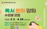 광주 전향윤 기자2026. 02.08[뉴스맘]광주광역시 시립도서관(무등,사직,산수,하남)은 3월부터 5월까지 운영하는 상반기 독서·문화교실 수강생을 오는 10일부터 선착순 모집한다. 상반기 독서·문화교실은 무등도서관 8개, 사직도서관 4개, 산수도서관 5개, 하남도서관 5개 등 총 22개 강좌다. 무등도서관은 ▲고전강독 ▲한자교실 ▲명쾌한 사주명리학 ▲나를 채우는 글쓰기 ▲서예교실 ▲민화교실 ▲한국화교실 ▲낭만통기타 등을 운영한다. 사직도서관은 ▲감성 시 낭송 ▲중장년을 위한 그림책 인문살롱 ▲양림스케치 ▲책과 함께하는 글쓰기(어린이 대상)를 준비했다. 산수도…