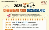 서구 전향윤 기자2025. 02.14[뉴스맘]광주 동구는 마을 문제를 주민이 주도적으로 해결하는 지속가능한 마을공동체를 조성하기 위해 ‘2025년 온리동구 마을공동체 지원 통합공모사업’에 참여할 공동체를 오는 21일까지 모집한다고 밝혔다. 이번 사업은 마을자치과, 인문도시정책과, 양성평등아동과, 건강정책과 4개 부서에서 진행된다. 공동체 중복 선정을 방지하고, 심사과정을 통합해 효율적이고 투명한 공모사업 운영을 목표로 한다. 마을자치과에서는 ▲마을공동체 형성 ▲마을총회 의제 ▲자율의제 ▲소통방 ▲마을사랑채 특화 ▲마을사랑채 활성화 등 총 6개 분야로 진행된다. …