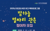 영광 전향윤 기자2025. 01.31[뉴스맘]여수시립환경도서관에서 오는 2월부터 ‘밤하늘 별자리 관측’ 야간 특화프로그램 참여자를 모집한다. ‘밤하늘 별자리 관측’은 2월 11일부터 12월 16일까지 환경도서관 강의실 및 옥상 천문대에서 매주 화·금요일 오후 7~9시(하절기는 오후 7시 30분~9시 30분)에 진행된다. 참여를 희망하는 시민은 2월 3일부터 관측 희망일 1일 전까지 여수시립도서관 누리집에서 신청하면 되며, 단체는 별도의 참가 신청서를 작성해 1주일 전까지 신청하면 된다. 단, 기상 악화 또는 5인 이하 신청의 경우 해당 일의 프로그램은 취소될 수…