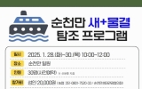 순천 전향윤 기자2025. 01.23[뉴스맘]순천시는 순천만생태관광협의회와 함께 순천만습지에서 28일부터 30일까지 방문객과 철새를 잇는 특별 프로그램인 ‘새+물결 탐조 특별 프로그램’을 운영한다고 밝혔다. 이번 프로그램에서는 생태체험선을 타고 순천만 하늘을 나는 겨울철새의 모습을 선상에서 직접 관찰할 수 있으며, 전문 해설사의 해설과 함께 순천만쉼터에서 판매되는 지역특산 간식도 맛볼 수 있다. 프로그램은 28일부터 30일까지 매일 1회, 오전 10시부터 12시까지 2시간 동안 진행되며 프로그램 참여는 회차당 선착순 30명으로 제한된다. 순천만습지 누리집 공…