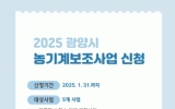 [뉴스맘]광양시가 오는 31일까지 2025년 농기계 보조사업 신청을 받는다고 10일 밝혔다. ‘농기계 보조사업’은 영농철 중첩 노동으로 인한 열악한 농작업 환경을 개선하고, 농업인의 생산성 향상에 기여하기 위한 사업으로, 광양시는 농기계 보조 사업비 9억 원을 들여 농업인을 지원할 계획이다. 1월에 신청할 수 있는 사업은 △다목적 소형농기계 지원사업 △여성친화형 다목적 소형전기운반차 지원사업 △농기계 등화장치 부착 지원사업 △이동식 다용도 작업대 지원사업 △농산물 생산비 절감 지원사업으로 총 5개 사업이다. 신청 자격은 광양시…