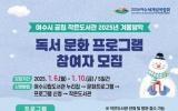 [뉴스맘]여수시가 공립 작은도서관 ‘겨울방학 독서문화 프로그램’에 참여할 6~7세 유아 및 초·중학생을 오는 6일부터 10일까지 5일간 모집한다. 프로그램 운영 기관은 ‘꿈을키우는(미평선경3차)’, ‘청솔글누리(돌산청솔2차)’, ‘화양열린(화양면민회관 2층)’, ‘국동(국동임시별관 1층)’ 작은도서관 4개소로, 각 기관에서 운영하는 프로그램이 상이하다. 꿈을키우는 작은도서관은 ‘페이지 위의 마술’, ‘책 한 권 맛있는 한 입’, ‘책이랑 보드랑’ 등 3개 프로그램을, 청솔글누리 작은도서관은 ‘그림책 속 큐브 여행’, ‘동화 속 …