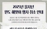목포 전향윤 기자2024. 12.30[뉴스맘]완도군은 2025년 1월 1일 신지 명사십리 이벤트광장 일원에서 예정되었던 ‘2025 을사년 완도 해맞이 행사’를 전면 취소한다고 밝혔다. 12월 29일 발생한 무안공항 항공기 사고에 따른 전국적인 애도 분위기를 고려하고 유가족을 배려하기 위해 해맞이 프로그램과 행사를 취소하기로 결정했다. 해맞이 행사는 취소됐지만 신지 명사십리 이벤트 광장을 찾는 방문객들을 위해 안전요원들을 배치할 계획이다. 신우철 완도군수는 “항공기 사고에 따른 탑승객분들과 유가족분들에게 깊은 애도와 위로의 마음을 표한다”라며 “해맞이 행사…