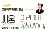 광양 전향윤 기자2025. 11.07[뉴스맘]광양용강도서관은 오는 11월 23일 오후 2시, 마로극장에서 초등학교 1~3학년 어린이를 대상으로 그림책 『싸움』의 저자 민아원 작가와의 만남을 운영한다고 밝혔다. ‘싸움: 여러 가지 감정 이야기’를 주제로 한 이번 작가와의 만남은 어린이들의 감수성과 사회성을 높이고, 건강한 자아와 관계 형성에 도움을 주기 위해 마련됐다. 함께 읽을 도서 『싸움』은 뾰족뾰족한 마음이 만나 별이 되는 이야기를 담은 그림책으로, 갈등 속에서도 서로의 감정을 이해하고 함께 성장해 가는 모습을 유쾌하면서도 따뜻하게 그려냈다. 참가 인원은 2…
