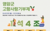 사회 전향윤 기자2024. 12.03[뉴스맘]영암군이 이달 말일까지 ‘고향사랑기부제 1석4조 이벤트’를 진행한다. 이번 이벤트는 연말정산 시즌을 앞두고 기부자들에게 다양한 혜택을 제공해 고향사랑기부제에 관심과 참여를 높인다는 취지로 마련됐다. 영암군은 기본 혜택인 10만원 전액 세액공제와 3만원 상당 답례품 제공에, ‘답례품 증량’ ‘답례품 추첨’을 더해 총 4가지 혜택을 제공한다. 답례품 증량은 한우·쌀·고구마 등 인기 답례품 16개 품목의 양을 늘려주는 내용이다. 한우는 220g에서 300g으로 증량하고, 추가 국거리용 한우 200g과 한우 사…