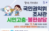 순천 전향윤 기자2024. 12.03[뉴스맘]순천시는 오는 5일 10시부터 16시까지 순천시 시민공익활동지원센터(순천시 중앙시장길 31)에서 국민권익위원회 ‘달리는 국민신문고’를 운영한다고 전했다. ‘달리는 국민신문고’는 국민권익위원회가 주관하는 프로그램으로, 시민들이 공공 서비스와 관련된 다양한 불편 사항을 직접 상담하고 해결할 수 있는 자리이다. 이번 행사에서는 권익위 조사관과 전문가 20여 명이 참여해 행정, 교육, 보훈, 세무, 복지, 노동, 건축 등 공공 서비스뿐만 아니라 소비자 피해, 지적 분쟁, 신용 회복, 민.형사 생활법률 등 생활 속 다양한 문제…