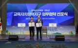 진도 전향윤 기자2025. 11.06[뉴스맘]진도군은 지난 11월 5일에 전라남도교육청과 ‘전라남도 교육자치협력지구 운영 업무협약’을 체결했다고 밝혔다. 이번 협약식은 진도교육지원청에서 주최하는 ‘2025 보배섬 진도 글로컬 교육축전’이 열리고 있는 진도실내체육관에서 진행됐으며, 김희수 진도군수, 김대중 전라남도교육감, 박금례 진도군의회의장과 군의원, 전라남도교육청과 진도교육지원청 관계자, 학부모, 학생들이 참석했다. 이번 협약은 지역사회와 학교가 함께 성장하는 지속 가능한 교육생태계를 구축하는 것을 목표로 한다. 업무협약의 주요 내용은 ▲교육 발전과 지역교육 …