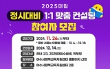 여수 전향윤 기자2024. 11.27[뉴스맘]여수시가 고등학교 3학년 학생 및 N수생(대입에 2번 이상 도전하는 수험생) 등 2025 대입 수험생을 대상으로 ‘정시전형 대비 1:1 맞춤 컨설팅’을 참여자를 모집한다. 모집인원은 60여 명으로, 참여를 희망하는 수험생과 학부모는 여수시행복교육지원센터 누리집을 통해 신청하면 된다. 선정된 학생·학부모는 내달 14일부터 사전에 제출한 수능 성적표 등을 토대로 서울·수도권 등지에서 온 전문 컨설턴트와 60분간 1대1 맞춤형 상담을 갖게 된다. 기타 자세한 내용은 여수시행복교육지원센터로 문의하면 된다. 시 관계자는 “…