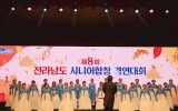 정치 전향윤 기자2024. 11.11[뉴스맘]영광군 산울림시니어합창단이 전남 시군 합창단 25개 팀 1,000여 명이 참여한 가운데 2024년 제8회 전라남도 시니어합창 경연대회에서 우수상을 수상했다. 2016년부터 60세 이상 어르신 40여 명으로 구성된 영광군 산울림시니어합창단은 지휘자와 반주자의 지도 아래 꾸준한 연습을 통해 지정곡 아리랑, 자유곡 아름다운나라 두곡을 합창하여 유감없는 실력으로 심사위원과 청중으로부터 뜨거운 호응을 끌어냈다. 이날 경연에선 평균 연령 70대 어르신들이 피아노 반주에 맞춰 나이가 무색할 만큼 열정 넘치는 환상적 하모니를 선…