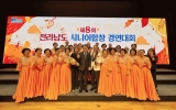 영암 전향윤 기자2024. 11.11[뉴스맘]영암기찬시니어합창단이 7일 전남도청에서 열린 ‘제8회 전라남도 시니어합창 경연대회’에서 포토상을 받았다. 전라남도 시니어합창 경연대회는 어르신의 건강한 노후생활과 사회참여를 위한 연중행사로, 이날 행사에는 22개 시·군에서 25개 팀, 1,000여 명이 참가했다. 영암기찬시니어합창단은 2016년 60세 이상 어르신 40여 명이 인생의 활기를 찾고자 창단해 꾸준한 활동을 이어오고 있다. 올해 대회에는 지정곡 ‘아리랑’과 자유곡 ‘무궁화꽃이 피었습니다’를 하모니로 선보여 주목을 받았다. ‘아리랑’은 서정적인 도입…
