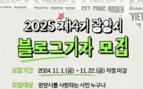 정치 전향윤 기자2024. 11.08[뉴스맘]광양시는 시정을 생생하게 알릴 ‘2025년도 제14기 광양시 블로그기자단’을 모집한다고 알렸다. 블로그기자단은 시정 소식부터 관광, 문화예술, 생활정보까지 광양시의 다양한 분야를 취재해 블로그에 게재함으로써 시정 전반을 조명하는 역할을 한다. 광양시는 ▲채택된 기사에 대한 소정의 원고료 지급 ▲기사 작성 및 사진 촬영 역량 강화를 위한 전문 강사 초빙 교육 ▲간담회 개최 ▲선진지 견학 기회 제공 ▲연말 우수 기자 표창 등 다양한 방법으로 기자단 활동을 지원하고 있다. 블로그기자단 모집 기간은 11월 1일부터 11월 2…