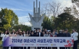 전남 전향윤 기자2024. 11.08[뉴스맘]전라남도는 8일까지 이틀간 ‘2024년 하반기 여순사건 사실조사단 직무교육’을 실시하고, 2025년 상반기까지 사실조사 100% 완료 목표 달성을 다짐했다. 이번 교육은 도, 시군 업무담당 공무원과 사실조사요원 등을 포함한 총 78명이 참석한 가운데 2023년 12월 여순사건 희생자·유족 추가 신고접수 종료에 따른 사실조사 역량 강화를 위해 이론교육과 현장답사로 진행됐다. 첫날인 7일 박건호 한국외대 객원교수가 ‘여순사건 이해를 위한 근현대사 역사용어’, 여순사건중앙지원단 조사팀장과 조사관이 ‘면담조사 기법’, ‘심사사…