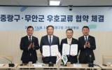 [뉴스맘]전남 무안군은 서울 중랑구와 지난 6일 중랑구청에서 두 지역 공동 발전을 위한 우호교류 협약을 체결했다고 밝혔다. 이날 협약식에는 김산 무안군수와 이호성 군의장, 류경기 중랑구청장과 최경보 구의장을 비롯해 양 도시 관계 공무원 30여 명이 참석했다. 두 지자체는 이번 협약을 계기로 주민들이 체감할 수 있는 다양한 교류사업을 추진하고 상호 발전을 위해 힘을 모을 예정이다. 주요 협력 분야는 ▲문화·예술·체육 교류를 통한 도농 지역 간 소통과 화합의 장 마련 ▲지역 관광자원 연계 및 활성화를 위한 협력 ▲우수 농특산물 홍…