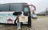 화순 전향윤 기자2024. 11.04[뉴스맘](재)화순군문화관광재단에서 위탁운영하고 있는 ‘2024 화순적벽버스투어’가 적벽셔틀 관람객으로만 처음으로 2만 명을 돌파했다. 재단은 지난 1일 오전 10시, 비가 오는 궂은날에도 화순적벽을 찾아주신 2만 번째 관람객 환영 행사를 펼쳤다. 이날 영예의 주인공은 경기도 성남시 분당구에서 화순적벽을 찾아온 이복순 씨로 뜻밖의 행운을 잡은 2만 번째 관람객에게는 화순적벽버스투어 홍보물인 트레블파우치, 트레블세면키트, 보냉백 등의 상품이 증정됐다. 화순 제1경인 화순적벽의 아름다움을 구경하러 왔다는 이복순 씨는 “화순적벽이 …