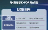 해남 전향윤 기자2024. 10.10[뉴스맘]오는 25일과 26일 광양공설운동장에서 ‘제4회 광양 K-POP 페스티벌’이 열린다. 비, QWER, 하이키, 이채연, 브브걸이 25일 개막식 공연을 펼치고 박정현, 신용재, 장윤정, 김연자 등이 26일 감동의 무대를 선사하는 이번 축제에 대한 전 국민의 관심이 뜨겁다. 광양시는 지난 9일 전 국민을 대상으로 온라인(티켓링크) 티켓오픈한 ‘제4회 광양 K-POP 페스티벌’ 첫째 날과 둘째 날 입장권이 매진됐다고 밝혔다. 온라인 입장권 배부는 종료됐으나 현장 입장권 배부 일정이 아직 남아있다. 2차 입장권 배부는 광…