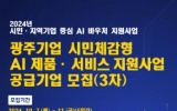 광주 전향윤 기자2024. 10.07[뉴스맘]광주광역시는 다양한 인공지능 제품과 서비스를 시민이 직접 체험하는 이용권(바우처) 지원사업에 참여할 지역 인공지능기업 3개사를 오는 11일까지 추가 모집한다. ‘시민·지역기업 중심 AI 바우처 지원사업’은 시민이 지역 인공지능기업의 제품과 서비스를 이용권(바우처)으로 일상에서 이용하고, 기업은 고객 확보를 통해 기술 고도화와 성장 기반을 다지기 위해 추진됐다. 이번 추가 모집에는 3개사에 총 4000만원의 이용권(바우처)이 차등 지원되며, 인공지능 제품·서비스 개선을 위한 맞춤형 상담(컨설팅), 투자유치설명회(IR) 참…