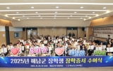문화 전향윤 기자2025. 10.30[뉴스맘]재단법인 해남군교육재단(이사장 명현관)은 지난 28일 해남군청 대회의실에서 2025년 해남군 장학생 장학증서 수여식을 가졌다. 수여식에서는 2025년 각 분야 해남군 장학생으로 선발된 우수학생 474명에게 총 4억 5,500만원의 장학금을 지원한다. 이날 수여식에는 장학생 대표 78명과 관계자들이 참석하여 자리를 빛냈다. 식전 공연으로 예체능 분야 장학생으로 선발된 한국무용창작팀과 태권도 시범팀이 수준 높은 공연을 선보이기도 했다. 2025년도 장학금 대상자는 성적우수 장학생 75명, 기능영재 장학생 30명, 희망장학…
