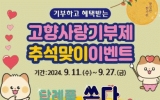 함평 전향윤 기자2024. 09.10[뉴스맘]화순군은 10일 추석을 맞아 고향사랑기부제 홍보와 모금액 확대를 위한 ‘화순군 고향사랑기부제 추석맞이 이벤트’를 9월 11일부터 27일까지 진행한다고 밝혔다. 이벤트 기간 내에 화순군 기부 참여자를 대상으로 무작위 추첨을 통해 30명에게 3만 원 상당 화순군 고향사랑기부제 답례품을 추가 증정할 예정이며, 온라인(고향사랑e음), 오프라인(NH농협은행)을 통해 10만 원 이상 기부하고 답례품을 주문하면 자동으로 응모된다. 당첨자 발표는 10월 초 개별 문자를 통해 안내될 예정이다. 구복규 화순군수는 “이번 이벤트는 추석…