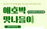 광주 전향윤 기자2024. 09.09[뉴스맘]광주광역시농업기술센터는 지역 대표 농산물인 애호박의 소비 촉진과 색다른 조리법 보급을 위해 ‘지역농산물 활용가치 공감 교육’ 참가자를 11일부터 모집한다. 모집 대상은 광주시민 48가족(기수별 8가족, 가족당 2~4명)이며, 온라인 ‘광주광역시바로예약’ 사이트를 통해 선착순으로 신청하면 된다. 교육은 오는 28일부터 총 6기수로 나눠 진행되며, 지역 농산물 탐구활동과 애호박 두부 스테이크, 스콘 등 요리체험을 한다. 특히 이번 교육은 직접 농사를 짓는 여성 농업인들이 강사로 나서 도시와 농촌 간 소통의 의미를 더할 예정…