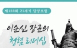 사회 전향윤 기자2024. 09.05[뉴스맘] 인문학교육·전통정원 특구 담양군이 오는 11일 오후 4시 담빛농업관에서 군민을 위한 열린 강좌 ‘21세기 담양포럼’을 개최한다. 이번 강좌는 이정희 전 국민권익위원회 부위원장을 초청해 ‘이순신 장군의 청렴 리더십’에 관한 강연을 통해 삶의 지혜와 폭넓은 인문학적 소양을 함양하고자 기획했다. 이번 강연은 우리 민족 역사상 존경받는 대표적인 인물인 충무공 이순신 장군에 관한 이야기로, 어려운 상황 속에서도 한결같은 신념과 원칙으로 지켜낸 청렴이 갖는 의미를 이해하며 우리 삶의 변화를 끌어내는 계기가 될 것으로 기대…