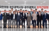 전남 전향윤 기자2024. 08.23[뉴스맘]광주시가 국민의힘 광주시당과 정책간담회를 열고 지역현안 해결에 적극 나선다. 광주광역시는 국민의힘 광주광역시당과 23일 시청 중회의실에서 정책간담회를 개최, 인공지능전환(AX) 실증밸리 조성, 복합쇼핑몰 교통 기반시설 신속 확보 등 주요 현안을 논의했다. 이날 간담회에는 광주시 강기정 시장, 고광완 행정부시장, 이상갑 문화경제부시장, 배일권 기획조정실장을 비롯한 주요 간부들이 참석했다. 국민의힘 광주광역시당에서는 김정현 시당위원장, 하헌식?김윤?김정명?안태욱 당협위원장 등이 참석했다. 간담회에서는 ▲인공지능전환(…
