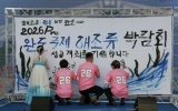 완도 전향윤 기자2025. 10.29[뉴스맘]완도군은 ‘청정 완도 가을 섬 여행’ 행사 마지막 날인 10월 26일 해변공원에서 ‘2026 Pre 완도국제해조류박람회’ 성공 개최를 기원하는 퍼포먼스를 진행했다. 2026 Pre완도국제해조류박람회는 완도의 대표 해양자원인 해조류와 전복을 주제로 2026년 5월 2일부터 7일까지 6일간 해변공원 일원에서 열리며 국제 심포지엄, 수출 상담회 등 다양한 프로그램이 진행될 예정이다. 이날 보여준 퍼포먼스는 ‘해조류, 전복하면 완도여라! 2026 Pre 완도국제해조류박람회 성공 개최를 기원합니다!’라는 문구를 캘리그라피로 힘차…
