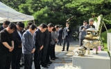광주 전향윤 기자2024. 08.18[뉴스맘]강기정 광주광역시장이 18일 국립서울현충원 현충관에서 열린 ‘김대중 대통령 서거 15주기 추도식’에 참석해 고인의 뜻을 되새겼다. 김대중평화센터가 주관한 이날 추도식은 우원식 국회의장 추모사, 한동훈 국민의힘 대표와 박찬대 더불어민주당 대표 권한대행 겸 원내대표의 추도사, 추모영상, 추모노래, 회고록 헌정식 및 헌정사 등의 순으로 진행됐다. 강 시장은 추도식이 끝난 뒤 김대중 전 대통령 묘소로 이동, 헌화·분향했다. 강 시장은 추도식 전날인 17일 전남대학교 민주마루에서 열린 고 김대중 대통령 서거 15주기 추모음악…