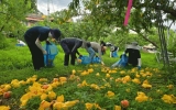 곡성군, 섬진강기차마을 겹벚꽃 만개 ‘절정’