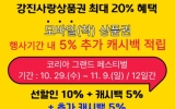 강진 전향윤 기자2025. 10.27[뉴스맘]광주광역시는 오는 10월29일부터 11월9일까지 열리는 ‘코리아 그랜드 페스티벌’ 기간 동안 광주상생체크카드 결제금액의 5%를 추가 환급(캐시백)하는 특별할인 행사를 실시한다. 이번 행사는 정부의 대규모 소비진작 행사인 ‘코리아 그랜드 페스티벌’과 연계해 추진되는 것으로, 시민들의 지역 내 소비를 촉진하고 소상공인 매출 증대를 지원하기 위한 조치다. 행사기간 광주 전역에서 광주상생체크카드를 이용하는 시민은 기존 13% 기본 할인에 5%를 추가한 18% 환급 혜택을 받을 수 있다. 다만 구매 때 선할인되는 광주상생선불…