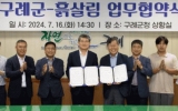 전남 전향윤 기자2024. 07.17[뉴스맘]전남 구례군은 지난 16일 군청 상황실에서 ㈜흙살림과 친환경 농업 발전과 지속 가능한 농업 실천을 위한 업무협약을 체결했다. 김순호 군수와 이태근 흙살림 회장은 협약서에 서명하며, ▲친환경 농업 실천 ▲유기농산물 소비 촉진 ▲탄소중립과 흙살리기 행사 지원 ▲토양 환경 개선을 위한 자문활동 등에 적극 협력하기로 약속했다. ㈜흙살림은 1991년 괴산에서 설립된 기업으로, 대한민국 유기농업을 선도하며 흙 살리기 운동을 30년간 실천하고 있다. 또한 ㈜흙살림은 친환경 농산물 공급사업, 친환경 농자재 생산 및 판매 등 다양한…