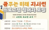 여수 전향윤 기자2024. 07.12[뉴스맘]여수시행복교육지원센터가 오는 31일까지 초등학교 5, 6학년 학생을 대상으로 학부모와 함께하는 ‘꿈꾸는 미래 자서전’ 프로그램 참여자를 모집한다. 이번 프로그램은 학생들이 과거와 현재를 되돌아보고 미래의 꿈을 담은 나만의 자서전을 완성하는 활동이다. 진로를 모색하는 과정에서 자신을 효과적으로 표현하는 글쓰기 방법을 배울 수 있다. 참여 희망 가족은 오는 31일까지 여수시행복교육지원센터 누리집에서 신청하면 된다. 프로그램은 내달 7일부터 13일까지 토·일요일을 제외하고 5회 간 진행될 예정이다. 그밖에 자세한 사…