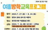 광양 전향윤 기자2024. 07.12[뉴스맘]광양용강도서관은 오는 16일부터 23까지 광양시립도서관 누리집을 통해 ‘여름방학 교육 프로그램’ 수강생을 선착순 모집한다고 밝혔다. 이번 프로그램은 광양시 어린이(유아 6 부터 7세) 15명, 초등학생(1 부터 2학년) 30명을 대상으로 하며 7월 27일부터 8월 24일까지 진행된다. 프로그램은 ▲유아 6 부터 7세는 ‘Summer English A’ ▲초등학생 1 부터 2학년은 ‘Summer English B’ ▲유아 7세부터 초등학생 1 부터 2학년을 통합한 ‘Zero 환경지킴이’ 등 3가지 강좌로 구성했다. 영어…