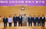 [뉴스맘]신안군의회는 7월 1일 제321회 임시회를 열고 제9대 후반기 신안군의회를 이끌어 나갈 의장단을 구성했다. 이날 선거는 9명의 의원 전원이 출석한 가운데 무기명 투표로 진행됐으며, 의장에는 만장일치로 이상주 의원(압해, 자은, 암태)이 선임됐고, 부의장에는 김기만 의원(지도, 증도, 임자)이 각각 선출됐다. 또한, 의회운영위원장에는 김용배 의원(박용찬, 안원준, 김혁성, 고인숙), 행정복지위원장에는 권오연 의원(김기만, 안원준, 김용배), 산업건설위원장에는 최춘옥 의원(박용찬, 김혁성, 고인숙)을 선출하면서 후반기 원 …