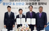 장성 전향윤 기자2024. 06.26[뉴스맘]광주 광산구와 전라남도 신안군이 26일 상생 교류?협력으로 양 도시의 지속가능한 미래를 함께 만들기 위한 자매결연을 체결했다. 이날 광산구청에서 열린 자매결연 체결식에는 박병규 광산구청장, 박우량 신안군수를 비롯한 김태완 광산구의회 의장, 김혁성 신안군의회 의장을 비롯한 양측 대표단 40여 명이 참석했다. 민선 8기 출범 후 광산구와 신안군은 황룡강생태길30 조성을 위한 배움 탐방, 박우량 군수 초청 특강 등으로 인연을 쌓아왔다. 자매결연은 대한민국 혁신을 선도해 온 광산구와 신안군이 지속가능한 미래와 지역상생을 실현…