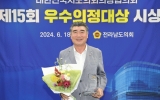 서구 전향윤 기자2024. 06.20[뉴스맘]전남도의회 예산결산특별위원회 최명수 위원장은 지난 18일 대한민국시도의회의장협의회 제15회 우수의정대상을 수상했다. ‘우수의정대상’은 대한민국시도의회의장협의회가 주관하여 전국 광역자치단체 의원을 대상으로 매년 지방의회 발전과 지역주민의 복리증진 및 삶의 질 향상에 기여한 의원을 선정해 수여하는 상으로 올해로 15회째를 맞고 있다. 최명수 위원장은 제12대 의회에 '전라남도 어린이놀이시설 안전관리 조례안', '전라남도 화재피해주민 지원 조례 일부개정조례안' 등 조례안 7건과, '고령자 금융피해 방지법 제정 촉구 건의안'…