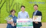 순천 전향윤 기자2024. 06.19[뉴스맘]순천시는 18일 삼화기업 前대표이사 박옥순 여사께서 1억 원을 이웃돕기성금으로 순천시에 온기나눔했다고 밝혔다. 이날 기탁한 후원금은 전남사회복지공동모금회를 통해 순천시 돌봄이 필요한 위기가구 지원사업에 사용될 예정이다. 박옥순 여사를 대신해 전달식에 참여한 자녀 삼화기업 대표이사 류승원씨와 한보스튜디오 대표 류춘희씨는 “어머니는 평소에 소외계층 및 사회약자에 기부하시고 싶은 마음이 많았다”며, “100세가 되시면 더 많이 기부하시려 한다”고 말했다. 노관규 순천시장은 “1억 원이라는 큰 금액을 기부하는 것은 결코 쉽지…
