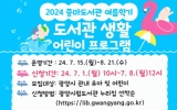 광양 전향윤 기자2024. 06.14[뉴스맘]중마도서관에서는 오는 7월 15일부터 8월 21일까지 6주 동안 어린이(유아 5~7세)와 초등학생(1~2학년)을 대상으로 ‘2024 중마도서관 여름학기 도서관 생활 어린이 프로그램’에 참여할 수강생을 선착순 모집한다고 밝혔다. 프로그램 내용은 ▲유아 5~6세는 ‘파란 상상 책 놀이 여름 속으로’ ▲유아 6~7세는 ‘말랑말랑 그림책 클레이’ ▲초등학생 1~2학년은 ‘여름아, 읽자! (세계 문화여행)’ 등 총 3개의 프로그램으로 구성됐다. 수강 신청은 7월 1일 오전 10시부터 7월 8일 12시까지 광양시립도서관 누리집에서…