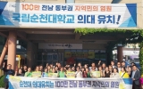 순천 전향윤 기자2024. 05.27[뉴스맘]순천시 왕조2동 통장협의회를 비롯한 주민자치회, 체육회, 마중물보장협의체가 지난 24일 왕조2동 행정복지센터 앞에서 ‘전남권 의과대학 순천대학교 유치 지지’를 위해 결의하는 자리를 가졌다. 주민들은 한목소리로 전남도가 지역갈등을 일으키는 공모를 철회하고, 지역 여건을 냉정히 분석하여 전남 도민의 생명권을 보장할 수 있는 현명한 선택을 하길 요구했다. 또한, 왕조2동 통장협의회는 ‘의대유치는 순천대로!’문구가 새겨진 티셔츠를 입고 활동하는 등 결의 의지를 적극 표현했다. 조연민 통장협의회장은 “의대 유치로 인한 동·서 …