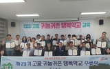 고흥 전향윤 기자2024. 05.27[뉴스맘]고흥군은 지난 24일 고흥 귀농귀촌 행복학교(고흥군 남양면 소재)에서 제23기 고흥 귀농귀촌 행복학교 귀농교육 수료식을 가졌다. 제23기 귀농교육은 고흥에서 귀농귀촌을 꿈꾸는 관내·외 22명의 교육생을 대상으로 귀농귀촌에 대한 올바른 이해와 초기 안정적인 정착을 돕기 위해 지난 20부터 5일간 일정으로 진행됐다. 이번 교육은 전문 강사를 초빙해 귀농 경영 마케팅, 재무관리, 법률 상식, 농업 재해예방 등 이론교육과 농업에 반드시 필요한 기술을 배울 수 있는 농업기술센터와 미래 농업의 비전을 연구하는 스마트팜사업소 현장학…