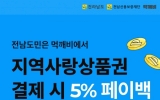 전남 전향윤 기자2024. 05.13[뉴스맘]전남 공공배달앱 ‘먹깨비’에서 13일부터 지역사랑상품권 결제 시 5% 페이백 이벤트를 시작했다. 전라남도는 소상공인의 수수료 부담 완화와 지역경제 활성화를 위해 공공배달앱 먹깨비와 상생배달앱 땡겨요를 운영 중이다. 공공배달앱 먹깨비는 지난 3월부터 소비자 첫 주문 5천 원 할인쿠폰 및 더블할인쿠폰, 우수·신규 가맹점 및 공짜배달 가맹점 대상 20만 원 상당의 지원금 프로모션을 시행하고 있다. 페이백 이벤트는 먹깨비에서 지역사랑상품권으로 주문을 완료한 고객에게 최대 5%(2천 원 한도) 먹깨비 포인트를 페이백으로 선착순…