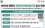 정치 전향윤 기자2025. 10.21[뉴스맘]광양시는 10월부터 상반기 기본교육을 이수하지 않은 민방위 대원을 대상으로 ‘2025년 민방위 보충 2차 교육’을 실시한다고 밝혔다. 이번 보충 교육은 민방위 대원의 임무와 역할, 장비 운용, 응급처치, 재난대비, 화생방 대응 등 유사시 실전 대응 역량 강화를 위한 학습으로 구성됐으며, 민방위 대원의 복무 연차별로 구분해 진행된다. ▲ 1~2년 차 대원은 4시간 집합교육, ▲ 3~4년 차 대원은 2시간 사이버교육, ▲ 5년 차 이상 대원은 1시간 사이버교육을 각각 이수해야 한다. 사이버교육(3년차 이상)은 10월 2…